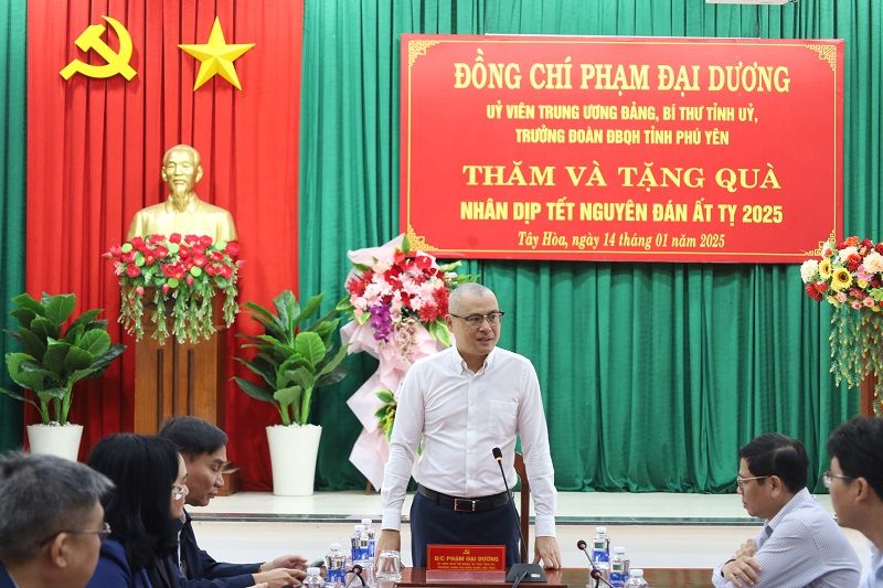 Nhân dịp Tết Nguyên đán Ất Tỵ 2025, sáng ngày 14/01, đồng chí Phạm Đại Dương, ủy viên Trung ương Đảng, Bí thư Tỉnh ủy, Trưởng đoàn đại biểu Quốc hội tỉnh đã có buổi thăm, tặng quà Tết cho các gia đình chính sách, hộ nghèo, hộ có hoàn cảnh khó khăn trên địa bàn huyện Tây Hòa.