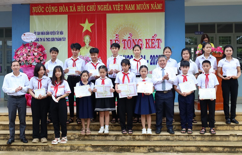 Đến dự lễ tổng kết, đồng chí Phó Bí thư Thường trực Huyện ủy đã biểu dương những thành tích mà thầy và trò Trường TH&THCS Sơn Thành Tây đã đạt được trong thời gian qua, đóng góp vào thành tích chung của ngành giáo dục huyện nhà. Đồng chí đề nghị trong thời gian tới, nhà trường tiếp tục phát huy những thành tích đã đạt được và phấn đấu nâng cao hơn nữa chất lượng giáo dục toàn diện của nhà trường; đồng chí đề nghị cấp uỷ, chính quyền xã Sơn Thành Tây tiếp tục quan tâm, tạo điều kiện để các em học sinh trên địa bàn xã được học tập tốt hơn; nhà trường phối hợp với chính quyền địa phương quản lý tốt các em học sinh trong dịp hè, tổ chức có chất lượng nội dung sinh hoạt hè cho học sinh, đảm bảo các em được tham gia những hoạt động vui chơi bổ ích; giáo dục học sinh chấp hành các quy định đảm bảo an ninh trật tự, an toàn giao thông, phòng chống tai nạn thương tích, nhất là tình trạng đuối nước, phòng chống các tệ nạn xã hội và tội phạm trong thanh thiếu niên.
