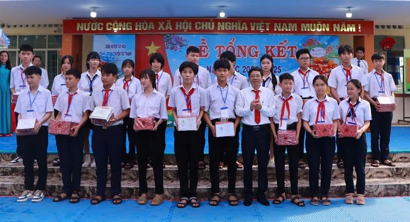 Nhân dịp này, trường cũng đã tặng giấy khen và nhiều phần thưởng cho các em học sinh có thành tích xuất sắc trong học tập năm học 2024-2025.