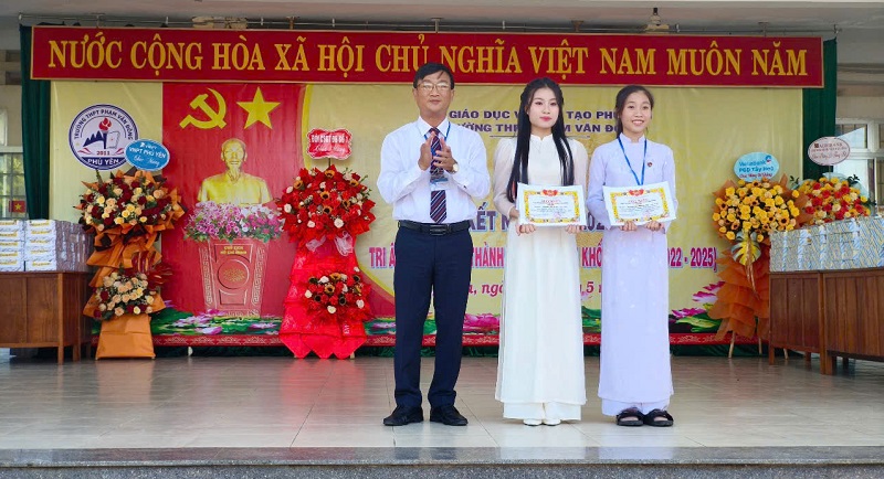 Tại buổi lễ, nhà trường đã vinh danh và trao thưởng cho các tập thể, cá nhân tiêu biểu trong học tập, rèn luyện và phong trào thi đua năm học 2024-2025. Đặc biệt, các học sinh đạt giải Nhất, Nhì, Ba cấp tỉnh đã được trao học bổng khuyến học của cựu học sinh nhà trường nhằm ghi nhận nỗ lực và khuyến khích các em tiếp tục vươn xa trong học tập. Đồng thời, Ngân hàng Agribank chi nhánh Tây Hòa, Ngân hàng Vietinbank cũng đã trao nhiều suất học bổng ý nghĩa cho học sinh có hoàn cảnh khó khăn, biết vươn lên trong học tập.