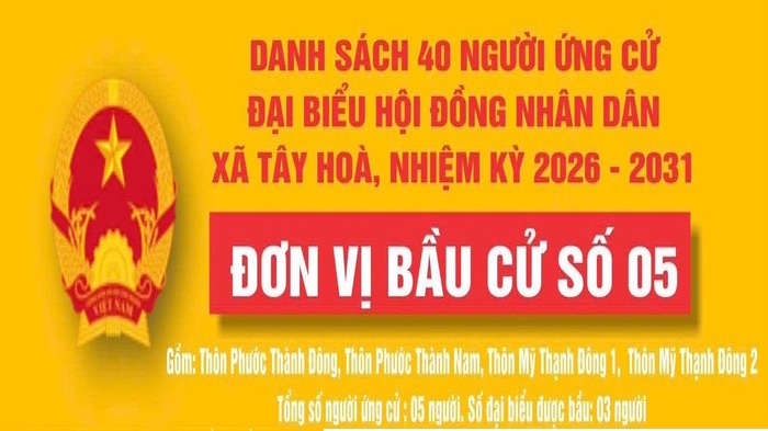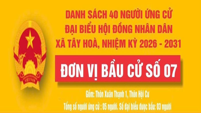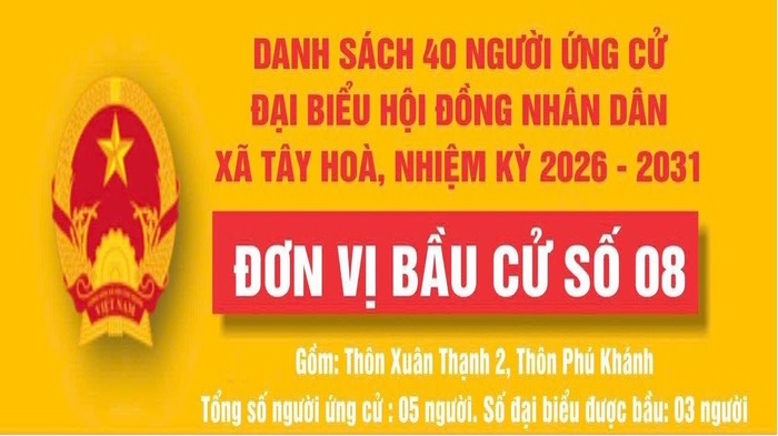 Xem thêmDanh sách tóm tắt tiểu sử của người ứng cử đại biểu HĐND xã Tây Hoà, nhiệm kỳ 2026-2031; Tại