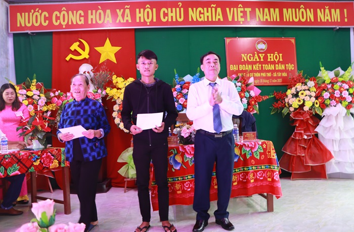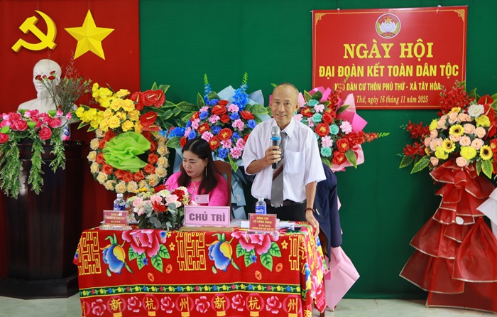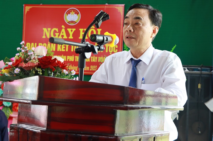 Chia vui cùng cán bộ, đảng viên và Nhân dân thôn Phú Thứ trong ngày hội, Phó Bí thư Đảng ủy, Chủ tịch UBND xã Tây Hoà Lê Văn Mười bày tỏ vui mừng khi được tham dự, nghe báo cáo, các ý kiến tham luận và tiết mục văn nghệ sôi nổi, phản ánh rõ nét tinh thần đoàn kết, tình làng nghĩa xóm của người dân. Đồng chí ghi nhận và biểu dương tinh thần đoàn kết, nỗ lực của cán bộ và Nhân dân thôn Phú Thứ trong thực hiện các phong trào thi đua yêu nước, xây dựng đời sống văn hóa ở khu dân cư, góp phần tích cực vào kết quả chung của xã Tây Hoà. Đồng chí đề nghị, trong thời gian tới Ban Công tác Mặt trận và toàn thể Nhân dân thôn Phú Thứ tiếp tục đoàn kết, đồng lòng thực hiện tốt các nhiệm vụ trọng tâm như: Đẩy mạnh Cuộc vận động “Toàn dân đoàn kết xây dựng nông thôn mới, đô thị văn minh”, trong đó trọng tâm là phát triển kinh tế, nâng cao đời sống, bảo vệ môi trường và đảm bảo an ninh trật tự; Đẩy mạnh các hoạt động văn hóa, thể thao, khuyến học, khuyến tài xây dựng đời sống tinh thần phong phú, lành mạnh; Tham gia giám sát, phản biện xã hội, góp ý xây dựng chính quyền, chi bộ thôn trong sạch, vững mạnh; Phát huy hơn nữa tinh thần “Dân biết, dân bàn, dân làm, dân kiểm tra, dân giám sát, dân thụ hưởng”, bảo đảm mọi hoạt động đều xuất phát từ lợi ích, nguyện vọng chính đáng của Nhân dân. Tiếp tục giữ vững danh hiệu thôn văn hóa, cảnh quan môi trường sáng, xanh, sạch, đẹp; Phát huy tinh thần tương thân tương ái, ủng hộ các loại quỹ nhân đạo từ thiện, quỹ đền ơn đáp nghĩa; thực hiện tốt chuyển đổi số, mô hình bình dân học vụ số, công dân số trên các lĩnh vực đời sống kinh tế, xã hội,… gìn giữ, vun đắp khối đại đoàn kết toàn dân, cùng nhau xây dựng quê hương Tây Hoà ngày càng phát triển giàu đẹp, văn minh, nghĩa tình.