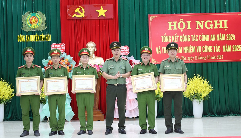 Dịp này, lực lượng Công an huyện Tây Hoà vinh dự có 03 cá nhân được Chủ tịch nước tặng thưởng Huân chương Bảo vệ Tổ quốc hạng Ba, Huy chương Vì An ninh Tổ quốc; Bộ Công an tặng Bằng khen cho 05 tập thể, cá nhân có thành tích trong phong trào thi đua “Vì An ninh Tổ quốc” giai đoạn 2022-2023, tặng Cờ thi đua cho 01 tập thể; 151 tập thể, cá nhân được Giám đốc Công an tỉnh khen thưởng về thành tích xuất sắc trong thực hiện nhiệm vụ năm 2024 và danh hiệu đơn vị quyết thắng, đơn vị tiên tiến, chiến sỹ thi đua cơ sở, chiến sĩ tiên tiến, lao động tiên tiến năm 2024.
