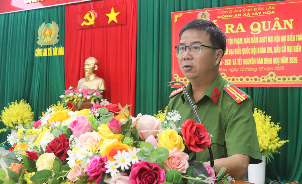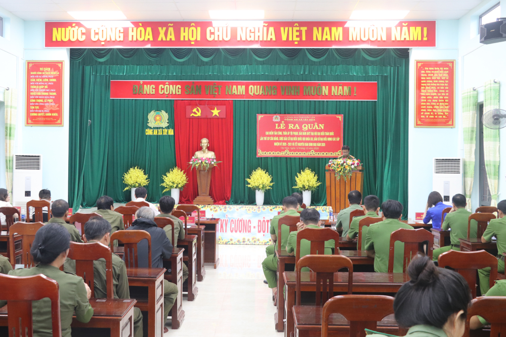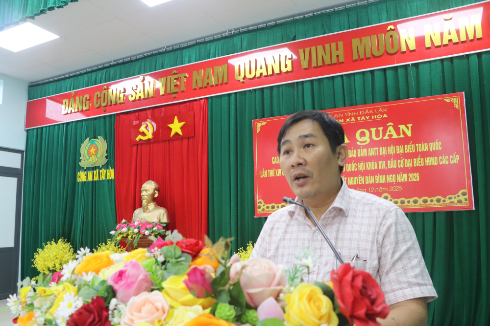 Sáng 12/12, Công an xã Tây Hòa tổ chức lễ ra quân đợt cao điểm tấn công, trấn áp các loại tội phạm, bảo đảm an ninh trật tự Đại hội đại biểu toàn quốc lần thứ XIV của Đảng, cuộc bầu cử đại biểu Quốc hội khóa XVI, HĐND các cấp nhiệm kỳ 2026-2031, Tết Nguyên đán Bính Ngọ 2026.