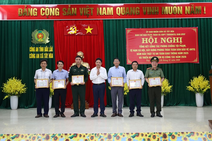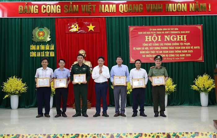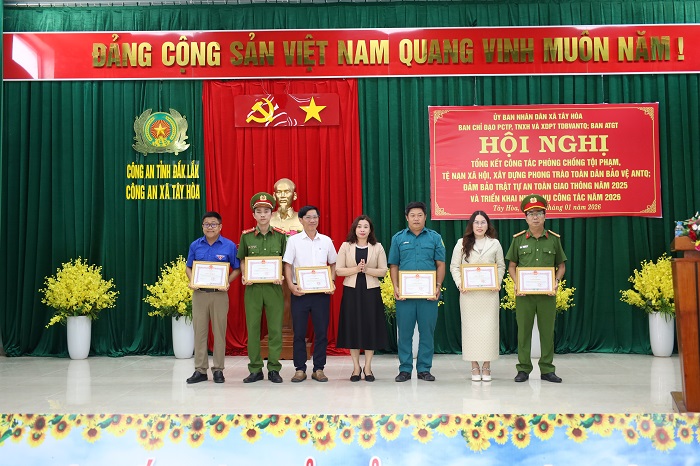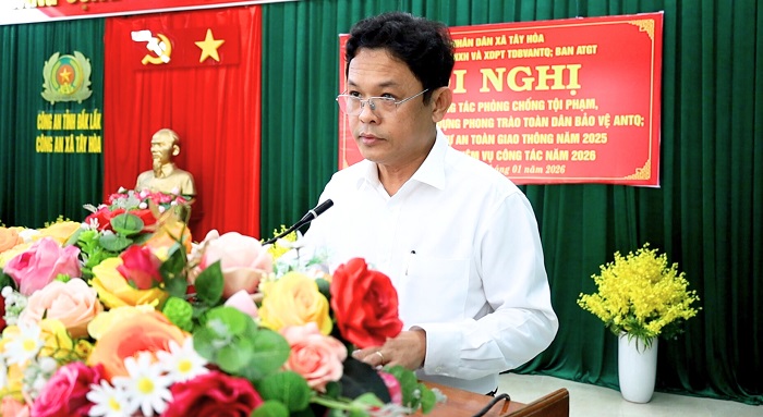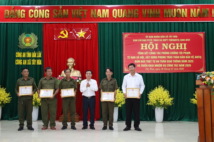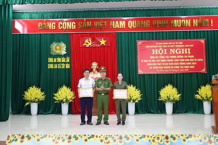 Chiều 30/1, Công an xã Tây Hoà tổ chức Hội nghị tổng kết công tác phòng chống tội phạm, tệ nạn xã hội, xây dựng phong trào toàn dân bảo vệ an ninh tổ quốc, đảm bảo trật tự an toàn giao thông năm 2025 và triển khai nhiệm vụ công tác năm 2026.