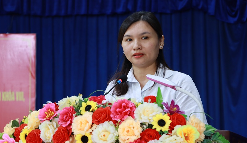 Đồng chí Đinh Thị Thu Thanh, Ủy viên Ban Thường vụ Tỉnh ủy, Trưởng Ban Tuyên giáo và Dân vận Tỉnh ủy phát biểu