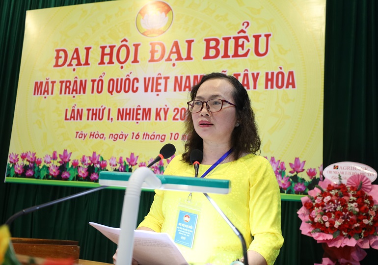 Phát biểu chỉ đạo Đại hội, đồng chí Phạm Thị Ngọc Tuyết, Phó Chủ tịch Uỷ ban MTTQ tỉnh Đắk Lắk và đồng chí Phan Xuân Hạnh, TUV, Bí thư Đảng uỷ, Chủ tịch HĐND xã đã biểu dương và ghi nhận những kết quả nổi bật mà MTTQ xã Tây Hòa đã đạt được trong nhiệm kỳ qua. Đồng thời, đề nghị Ủy ban MTTQ xã và các tổ chức thành viên tiếp tục bám sát nghị quyết của Đảng, chương trình công tác của Mặt trận cấp trên, phát huy vai trò là cầu nối giữa Đảng, chính quyền với Nhân dân, vận động Nhân dân tích cực tham gia các phong trào thi đua yêu nước, xây dựng quê hương Tây Hòa ngày càng phát triển, văn minh, giàu đẹp.