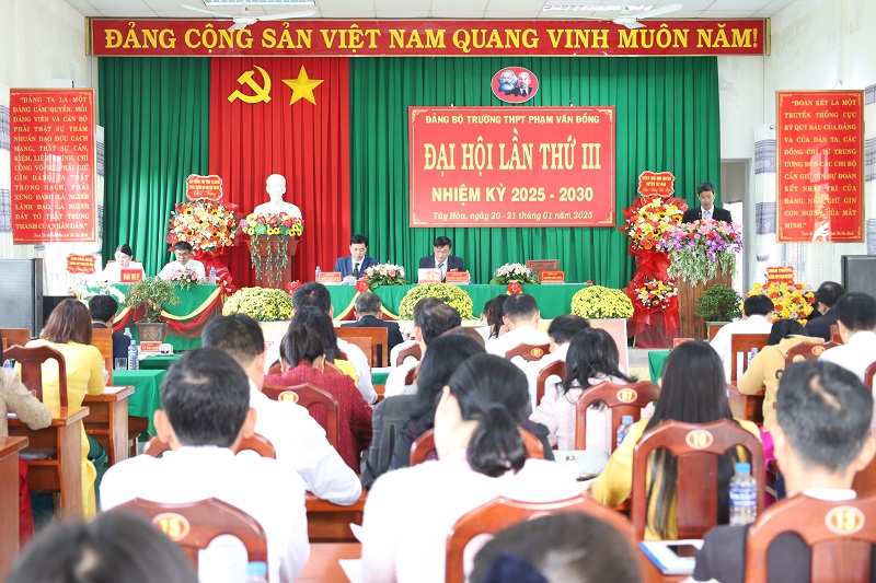 Ngày 21/01, Ban Chấp hành Đảng bộ Trường THPT Phạm Văn Đồng đã long trọng tổ chức Đại hội đại biểu Đảng bộ lần thứ III, nhiệm kỳ 2025 – 2030. Đây là đơn vị thứ hai được Huyện ủy Tây Hòa chọn làm điểm để chỉ đạo rút kinh nghiệm công tác tổ chức Đại hội cấp cơ sở, nhiệm kỳ 2025-2030 trong toàn huyện.