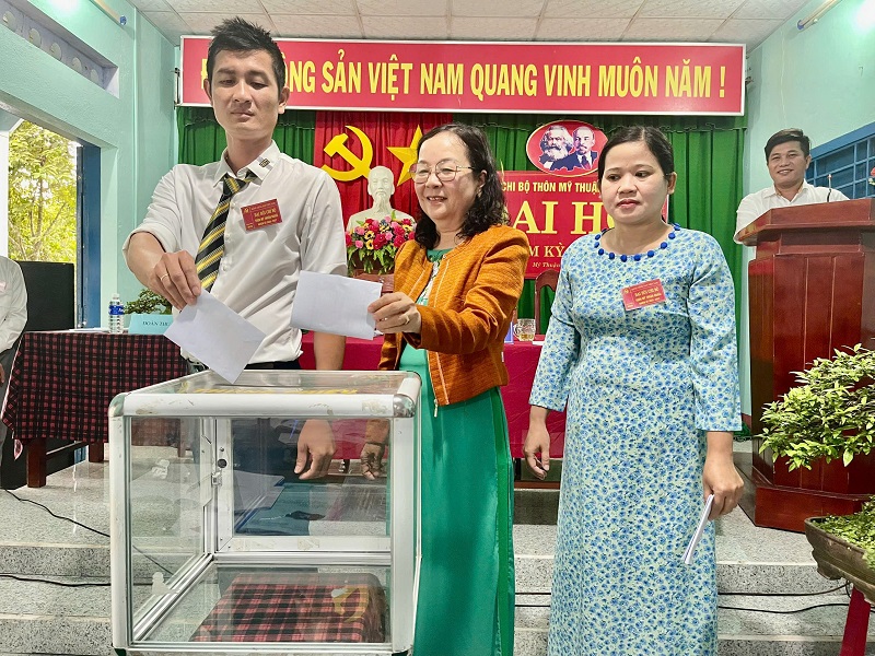 Các đại biểu dự Đại hội chi bộ thôn Mỹ Thuận Ngoài bỏ phiếu bầu cử