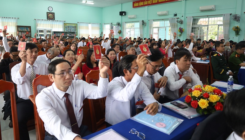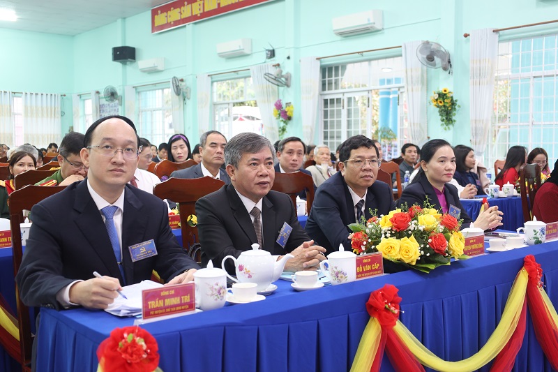 Về dự và chỉ đạo Đại hội có các đồng chí: Đinh Thị Thu Thanh, UVBTV, Trưởng ban Dân vận Tỉnh ủy, phụ trách địa bàn huyện; Nguyễn Phương Đông, Tỉnh ủy viên, Bí thư Huyện ủy; Đỗ Văn Cấp, Phó Bí thư Thường trực Huyện ủy, Chủ tịch HĐND huyện; Trần Minh Trí, Phó Bí thư Huyện ủy, Chủ tịch UBND huyện; các đồng chí UVBTV Huyện ủy; lãnh đạo các Ban Đảng Huyện ủy; Thường trực HĐND, UBND, Uỷ ban MTTQ Việt Nam huyện; Bí thư, Phó Bí thư các TCCS Đảng trực thuộc Huyện ủy cùng 140 đại biểu chính thức đại diện cho 403 đảng viên thuộc 14 chi bộ cơ sở trên địa bàn xã. Dự Đại hội còn có mẹ VNAH Nguyễn Thị Mởn.