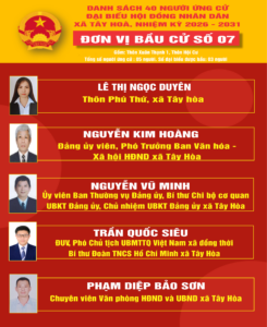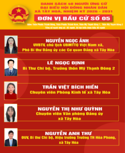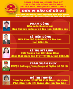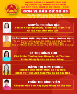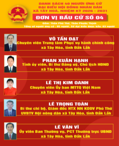 DANH SÁCH 40 NGƯỜI ỨNG CỬ ĐẠI BIỂU HỘI ĐỒNG NHÂN DÂN XÃ TÂY HOÀ, NHIỆM KỲ 2026 – 2031 04/03/2026 Chia sẻ: