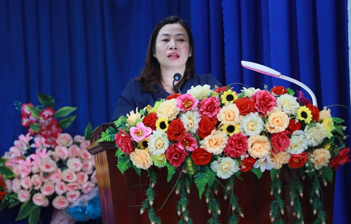 Đồng chí Lê Thị Hồng Lưu – Phó Bí thư Thường trực Đảng ủy xã phát biểu