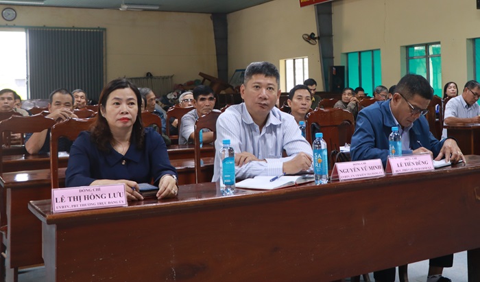 Tham dự hội nghị có đồng chí Lê Thị Hồng Lưu – Phó Bí thư Thường trực Đảng ủy xã; đồng chí Nguyễn Vũ Minh – UV BTV, Chủ nhiệm UBKT Đảng ủy; đồng chí Lê Tiến Dũng – Phó Chủ tịch UBND xã; cùng các thành viên Tổ đại biểu và hơn 60 cử tri.