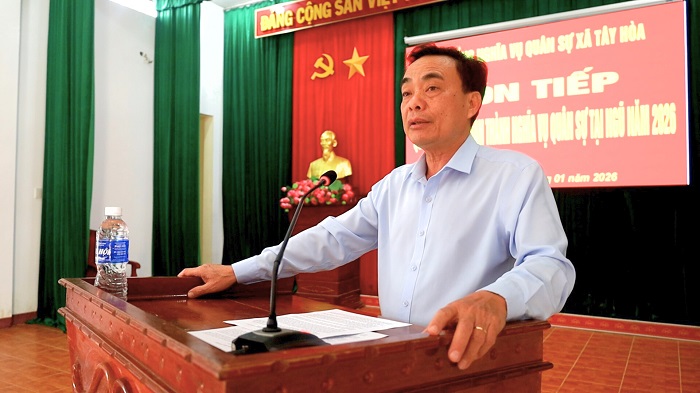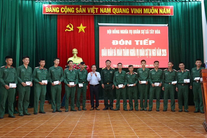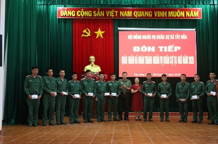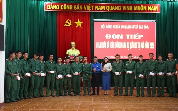 Chiều ngày 28/01/2026, UBND xã Tây Hòa tổ chức buổi gặp mặt đón tiếp quân nhân đã hoàn thành nghĩa vụ quân sự tại ngũ năm 2026 trở về địa phương. Đây là hoạt động nhằm động viên tinh thần và thực hiện tốt chính sách hậu phương quân đội cho quân nhân hoàn thành nghĩa vụ quân sự trở về địa phương.