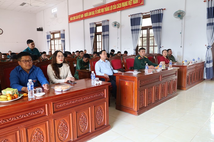 Tham dự buổi gặp mặt có các đồng chí: Lê Văn Mười – Phó Bí thư Đảng ủy, Chủ tịch UBND xã, Chủ tịch HĐNVQS xã; Thiếu tá Trần Tấn Việt – UVBTV Đảng ủy, Chỉ huy trưởng Ban Chỉ huy quân sự xã; thành viên Hội đồng NVQS xã; đại diện các ngành, đoàn thể xã cùng 68 quân nhân hoàn thành nghĩa vụ quân sự trở về địa phương năm 2026 và gia đình của quân nhân.