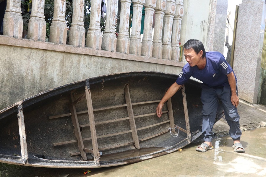 Không kịp suy nghĩ nhiều, anh lặng lẽ rời lấy chiếc ghe đánh lưới cũ của hàng xóm – phương tiện vốn chỉ chở được một người và không có áo phao hay bất cứ thiết bị cứu hộ nào – để lao vào dòng nước đang cuồn cuộn.