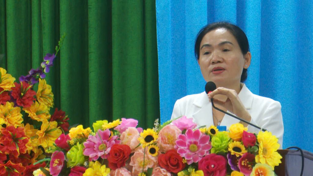 Đồng chí Đinh Thị Thu Thanh, ủy viên BTV Tỉnh ủy, Trưởng ban Dân vận Tỉnh ủy phát biểu