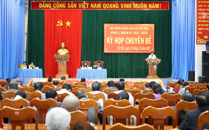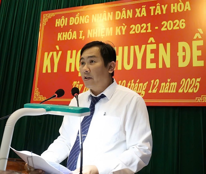 Chiều ngày 19/12, HĐND xã Tây Hòa khóa I, nhiệm kỳ 2021–2026 tổ chức Kỳ họp chuyên đề nhằm xem xét, thảo luận và thông qua các nội dung quan trọng liên quan đến dự toán thu, chi ngân sách nhà nước trên địa bàn xã năm 2026.