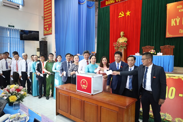 Đại biểu HĐND xã Tây Hoà khóa II bỏ phiếu bầu các chức danh của HĐND