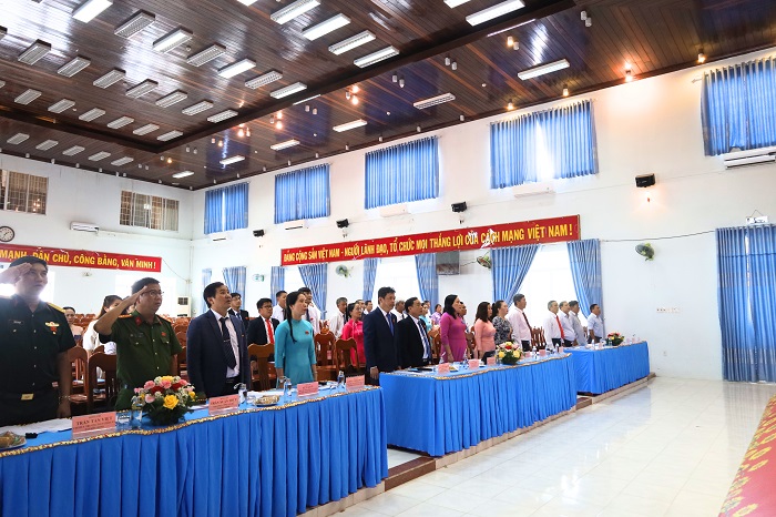 Các đại biểu tham dự kỳ họp thực hiện nghi lễ chào cờ