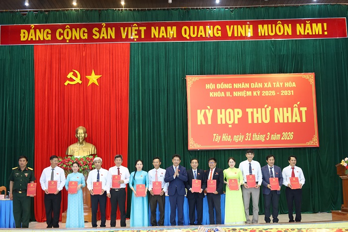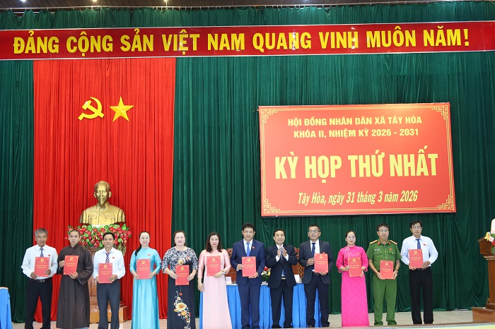 Tại Hội trường xã Tây Hoà, chiều ngày 31/3/2026, Hội đồng nhân dân xã Tây Hoà khóa II đã long trọng tổ chức Kỳ họp thứ nhất, nhiệm kỳ 2026 2031.