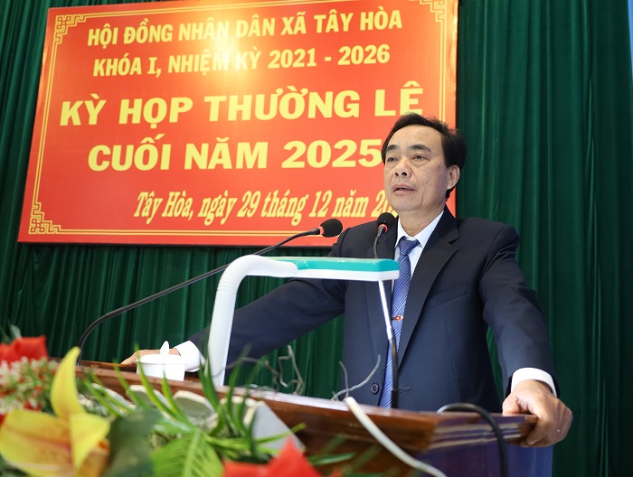 Phát biểu bế mạc kỳ họp, đồng chí Phan Xuân Hạnh, Tỉnh ủy viên, Bí thư Đảng ủy, Chủ tịch HĐND xã khẳng định: Kỳ họp thường lệ cuối năm 2025 HĐND xã Tây Hòa khóa I đã thành công tốt đẹp, hoàn thành toàn bộ nội dung, chương trình đề ra. Đồng chí nhấn mạnh, 05 nghị quyết được thông qua tại kỳ họp lần này là những văn bản pháp lý cơ bản để UBND xã điều hành nhiệm vụ phát triển kinh tế – xã hội năm 2026.