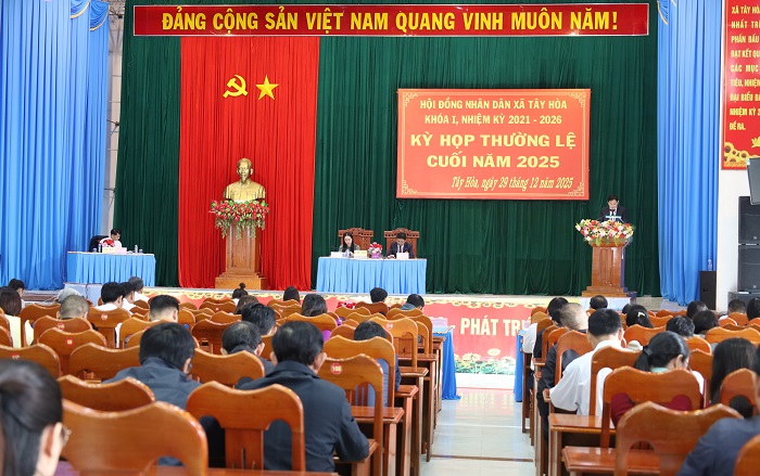 Ngày 29/12, HĐND xã Tây Hòa khóa I, nhiệm kỳ 2021–2026 tổ chức Kỳ họp thường lệ cuối năm 2025 nhằm đánh giá tình hình phát triển kinh tế – xã hội, quốc phòng – an ninh năm 2025 và quyết định các nội dung quan trọng theo thẩm quyền.