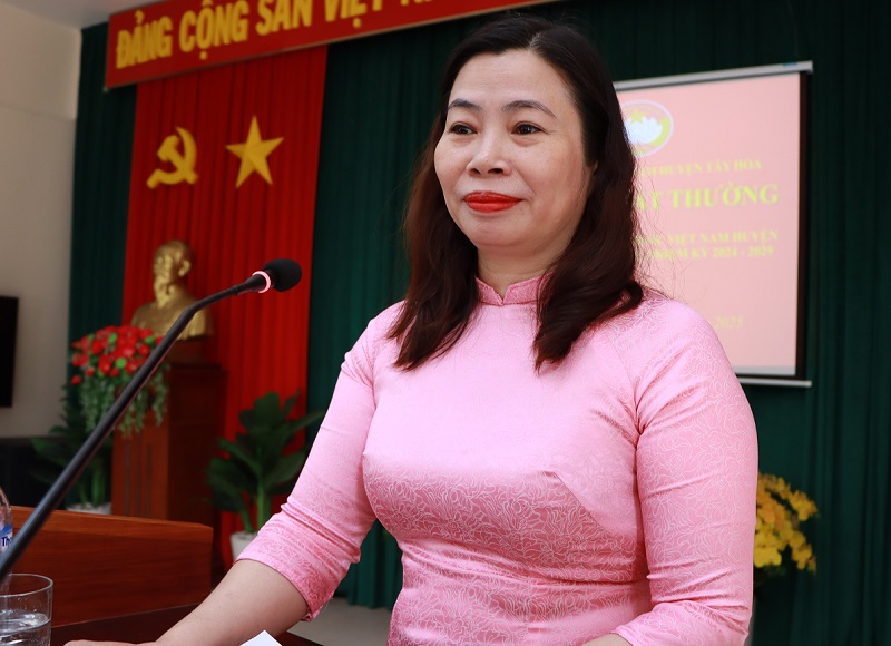 Phát biểu nhận nhiệm vụ, đồng chí Lê Thị Hồng Lưu, Uỷ viên BTV, Chủ tịch UBMTTQ Việt Nam huyện hứa sẽ cùng UBMTTQ Việt Nam huyện và Ban Thường trực tiếp tục thực hiện nhiệm vụ chính trị của UBMTTQ đã đề ra theo kế hoạch, theo chương trình trong thời gian tới và chú trọng thực hiện tốt việc vận động, tập hợp các tầng lớp nhân dân, phát huy sức mạnh đại đoàn kết toàn dân để xây dựng quê hương Tây Hòa ngày càng giàu đẹp, văn minh.