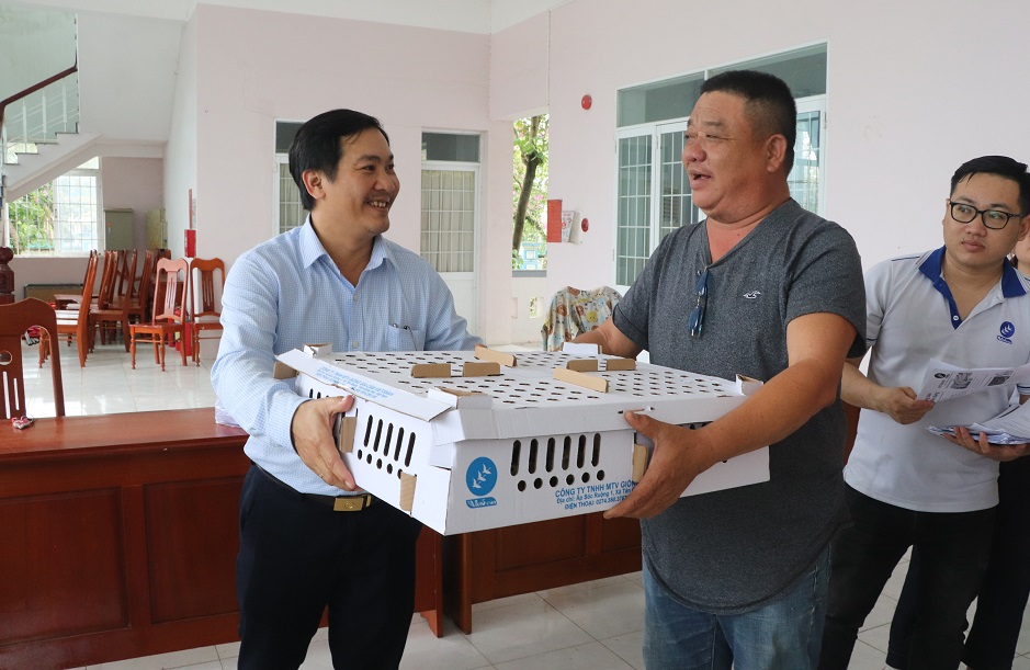 Trong đợt hỗ trợ này, 70 hộ dân chịu thiệt hại lớn về chăn nuôi được nhận sinh kế; mỗi hộ được trao 50 con gà giống và 25 kg thức ăn gia cầm. Đại diện Công ty CP Chăn nuôi gia cầm Vietswan cũng trực tiếp hướng dẫn kỹ thuật chăn nuôi gia cầm thương phẩm, giúp bà con hạn chế rủi ro trong quá trình tái đàn, nâng cao hiệu quả kinh tế.