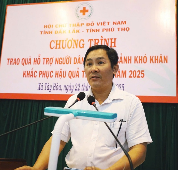 Phát biểu đáp từ, đồng chí Lê Văn Vĩ, Phó Chủ tịch UBND xã Tây Hoà trân trọng cảm ơn sự quan tâm, hỗ trợ kịp thời và đầy ý nghĩa của Hội Chữ thập đỏ tỉnh Phú Thọ và Hội Chữ thập đỏ tỉnh Đắk Lắk. Đồng chí khẳng định đây là nguồn động viên to lớn, thể hiện tinh thần đoàn kết, nhân ái, góp phần giúp địa phương và bà con nhân dân xã Tây Hoà sớm khắc phục hậu quả thiên tai, ổn định đời sống và phát triển sản xuất trong thời gian tới.