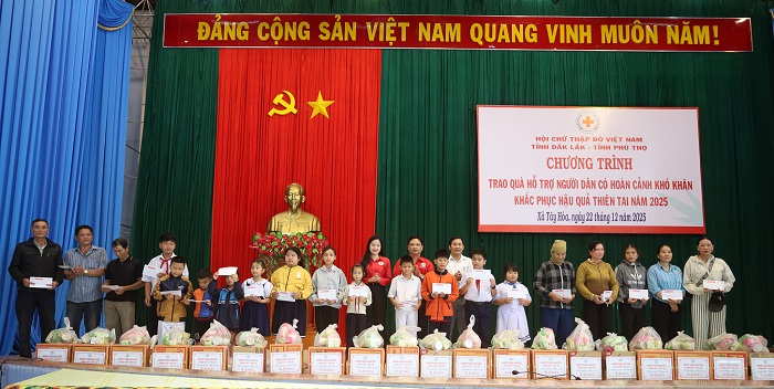 Sáng ngày 22/12, Hội Chữ thập đỏ tỉnh Phú Thọ phối hợp với Hội Chữ thập đỏ tỉnh Đắk Lắk đã tổ chức chương trình trao quà hỗ trợ người dân có hoàn cảnh khó khăn nhằm khắc phục hậu quả thiên tai trên địa bàn xã Tây Hoà.