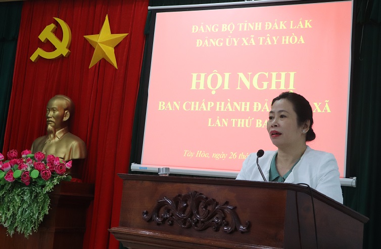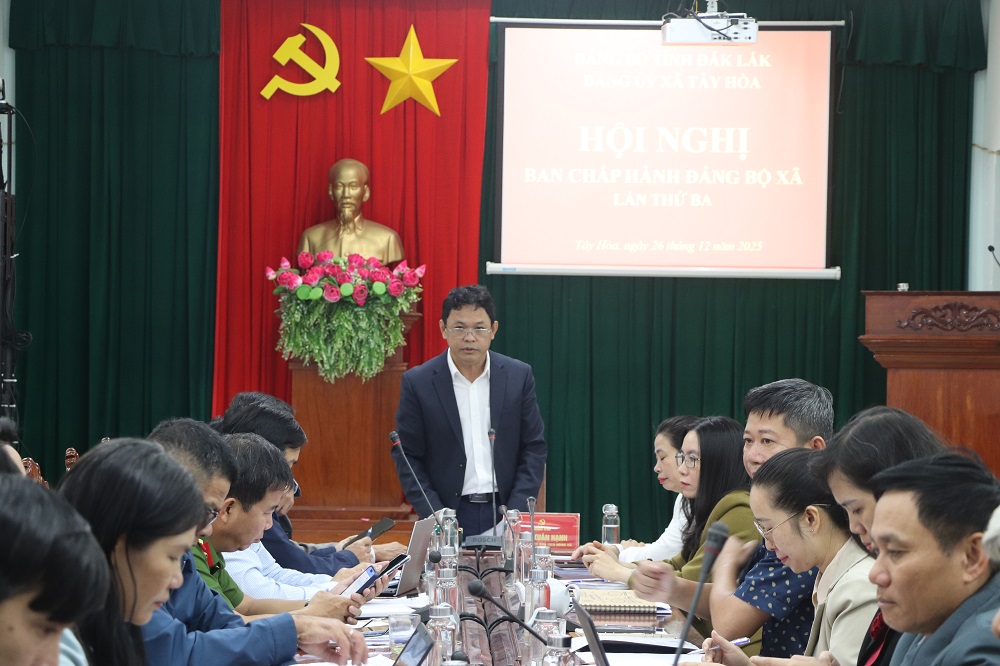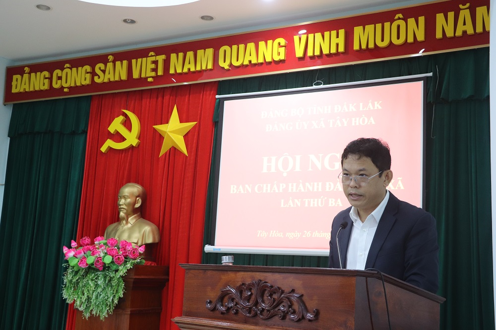 Sáng 26/12, Đảng ủy xã Tây Hòa tổ chức Hội nghị Ban Chấp hành Đảng bộ xã lần thứ ba – mở rộng. Các đồng chí: Phan Xuân Hạnh, TUV, Bí thư Đảng ủy, Chủ tịch HĐND xã; Lê Thị Hồng Lưu, Phó Bí thư thường trực Đảng ủy; Lê Văn Mười, Phó Bí thư Đảng ủy, Chủ tịch UBND xã, đồng chủ trì hội nghị.