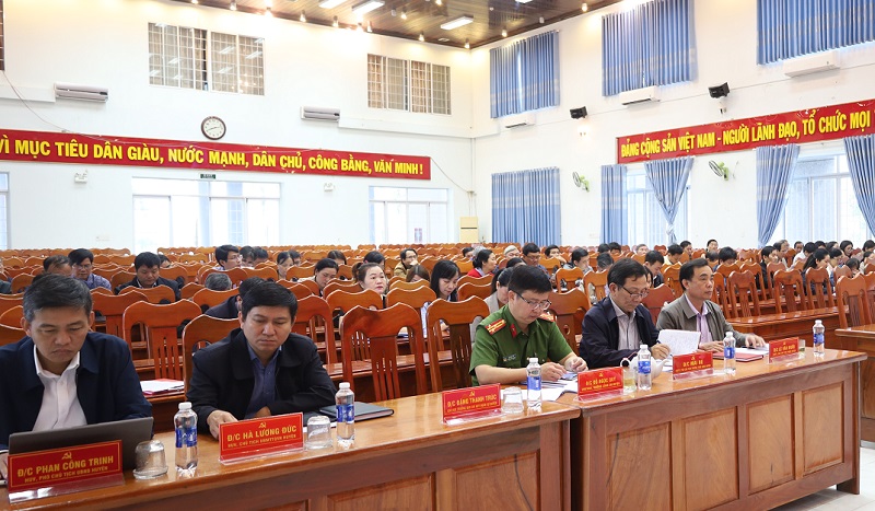 Các đồng chí: Nguyễn Phương Đông, Tỉnh ủy viên, Bí thư Huyện ủy; Đỗ Văn Cấp, Phó Bí thư Thường trực Huyện ủy, Chủ tịch HĐND huyện; Trần Minh Trí, Phó Bí thư Huyện ủy, Chủ tịch UBND huyện đồng chủ trì Hội nghị.