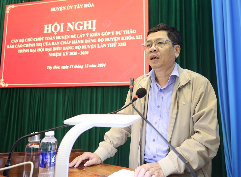 Sáng ngày 31/12, Huyện ủy Tây Hòa tổ chức Hội nghị cán bộ chủ chốt toàn huyện để lấy ý kiến góp ý dự thảo báo cáo chính trị của BCH Đảng bộ huyện khóa XII trình Đại hội đại biểu Đảng bộ huyện lần thứ XIII nhiệm kỳ 2025-2030.