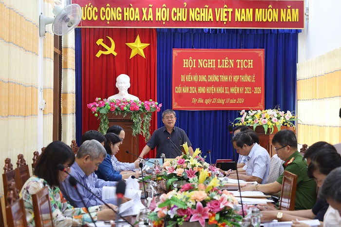 Ngày 23/10, Thường trực HĐND huyện Tây Hòa tổ chức Hội nghị liên tịch thông qua dự kiến nội dung, chương trình kỳ họp thường lệ cuối năm 2024, HĐND huyện khoá XI, nhiệm kỳ 2021-2026.
