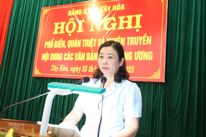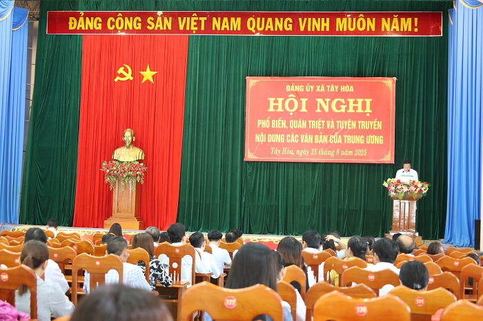 Sáng ngày 25/8, Ban Thường vụ Đảng ủy xã Tây Hoà tổ chức Hội nghị phổ biến, quán triệt và tuyên truyền nội dung các văn bản của Trung ương.