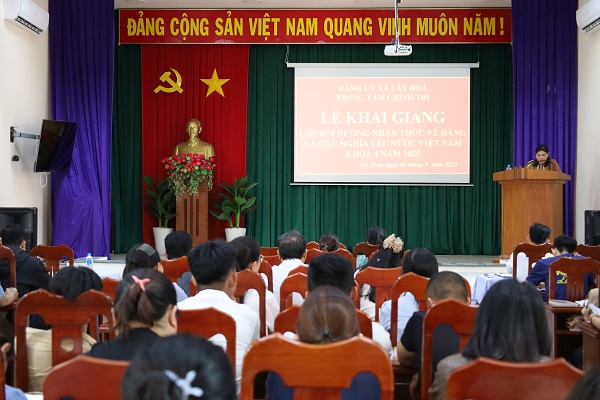 Sáng ngày 08/9, Trung tâm Chính trị Tây Hoà phối hợp tổ chức khai giảng lớp bồi dưỡng nhận thức về Đảng và chuyên đề Chủ nghĩa yêu nước Việt Nam khoá IV/2025 cho hơn 50 học viên đến từ các TCCS Đảng.