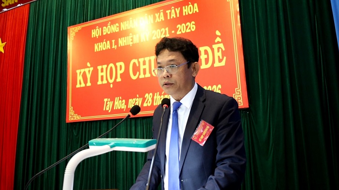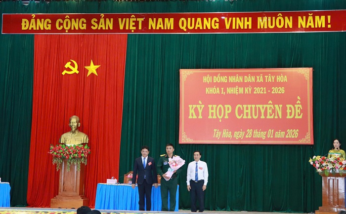 Cũng tại kỳ họp, HĐND xã tiến hành thủ tục bầu bổ sung Ủy viên UBND xã Tây Hòa, nhiệm kỳ 2021-2026 đối với đồng chí Trần Tấn Việt, Chỉ huy trưởng Ban Chỉ huy Quân sự xã Tây Hòa.
