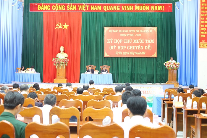 Tại Kỳ họp, các đại biểu đã tập trung xem xét, thảo luận, cho ý kiến các tờ trình, dự thảo nghị quyết thông qua Điều chỉnh Quy hoạch sử dụng đất đến năm 2030 của huyện Tây Hòa; điều chỉnh, bổ sung Kế hoạch đầu tư công trung hạn 2021-2025 (lần 9) và Kế hoạch đầu tư công năm 2024 (lần 2); quyết định chủ trương đầu tư Dự án xây dựng mới nhà làm việc của lực lượng Cảnh sát giao thông Công an huyện Tây Hòa.