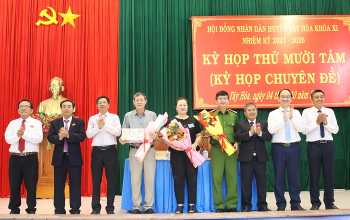 Kỳ họp cũng đã tiến hành thủ tục miễn nhiệm đại biểu HĐND huyện khóa XI, nhiệm kỳ 2021-2026 đối với đồng chí Bùi Xuân Chiến, nguyên Trưởng Công an huyện; miễn nhiệm Ủy viên UBND huyện nhiệm kỳ 2021-2026 đối với các đồng chí Bùi Xuân Chiến, nguyên Trưởng Công an huyện Tây Hòa và Đặng Phi Thường, nguyên Chỉ huy trưởng Ban Chỉ huy Quân sự huyện Tây Hòa, do chuyển công tác khác. Tiếp đó, Kỳ họp đã thực hiện quy trình bầu bổ sung chức danh Ủy viên UBND huyện nhiệm kỳ 2021-2026; theo kết quả bầu tại Kỳ họp, các đồng chí Nguyễn Ngọc Ảnh, Trưởng phòng Tư pháp huyện; Đỗ Ngọc Quý, ủy viên BTV Huyện ủy, Trưởng Công an huyện và đồng chí Đặng Thanh Trúc, Chỉ huy trưởng Ban Chỉ huy Quân sự huyện được bầu giữ chức Ủy viên UBND huyện.