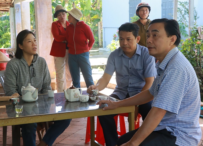 Các đồng chí lãnh đạo xã nắm tình hình thiệt hại tại thôn Mỹ Thạnh Nam
