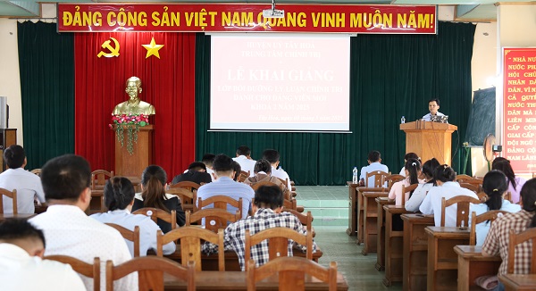 Phát biểu khai mạc buổi lễ, đồng chí Lê Trung Hiền, Uỷ viên BTV, Trưởng ban Tuyên giáo và Dân vận Huyện uỷ, Giám đốc Trung tâm Chính trị huyện cũng đề nghị các học viên nghiêm túc thực hiện nội quy, quy chế của lớp học, tập trung tiếp thu và ghi chép đầy đủ nội dung bài học để làm cơ sở viết bài thu hoạch cuối khóa đạt kết quả tốt nhất. Mỗi học viên cần tích cực, chủ động trong học tập, rèn luyện và công tác, bồi đắp lý tưởng cách mạng, góp phần quan trọng vào công cuộc xây dựng Đảng, phát triển đất nước.
