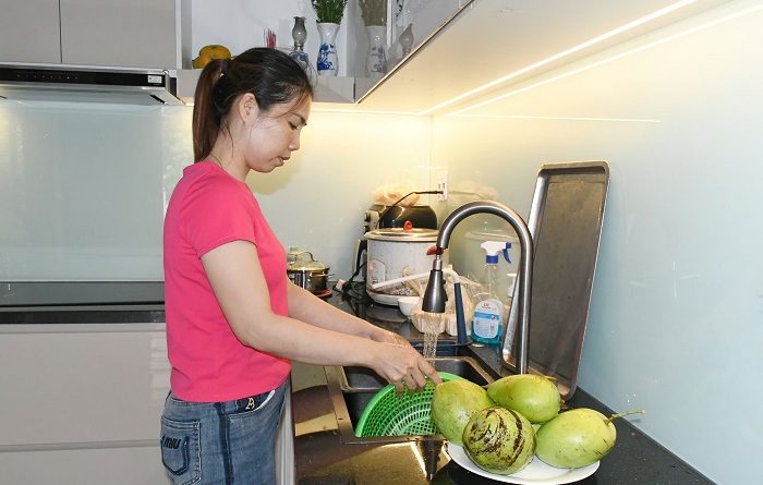 Chị Lê Thị Ngọc Duyên ở thị trấn Phú Thứ được vay vốn NS&VSMTNT để làm hệ thống lọc nước
