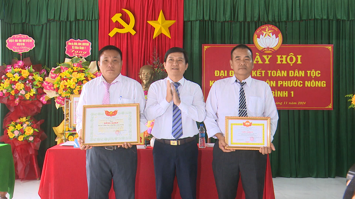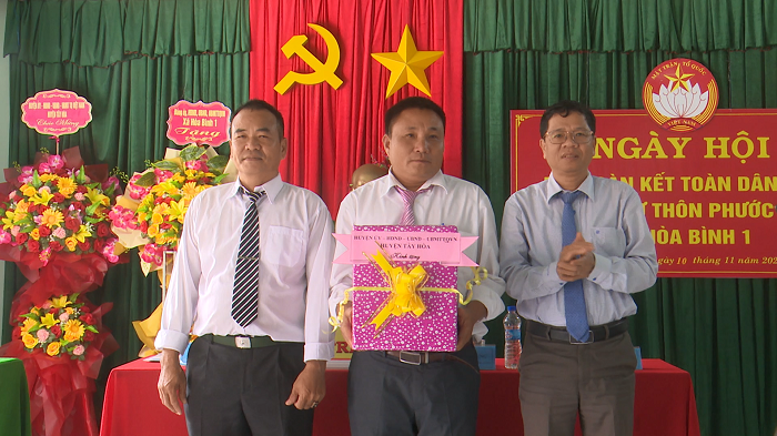 Dịp này, đồng chí Đinh Thị Thu Thanh, Trưởng ban Dân vận Tỉnh ủy và lãnh đạo huyện Tây Hòa đã tặng quà cho khu dân cư thôn Phước Nông; UBMTTQ Việt Nam tỉnh tặng bằng khen tập thể khu dân cư thôn Phước Nông; UBND xã Hòa Bình 1 khen thưởng các cá nhân có thành tích xuất sắc trong thực hiện Cuộc vận động “Toàn dân đoàn kết xây dựng nông thôn mới, đô thị văn minh” năm 2024.