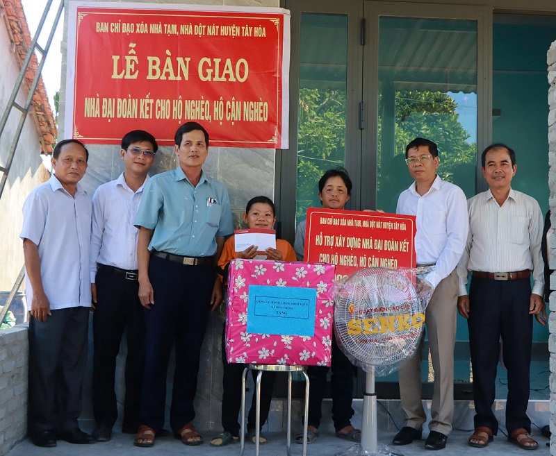 Dịp này, BCĐ Triển khai xóa nhà tạm, nhà dột nát huyện, xã và Ngân hàng Nông nghiệp & Phát triển Nông thôn huyện cũng đã trao tặng các phần quà cho 02 hộ gia đình. Đây là nguồn động viên, tạo động lực trong lao động sản xuất, thúc đẩy phát triển kinh tế của gia đình.