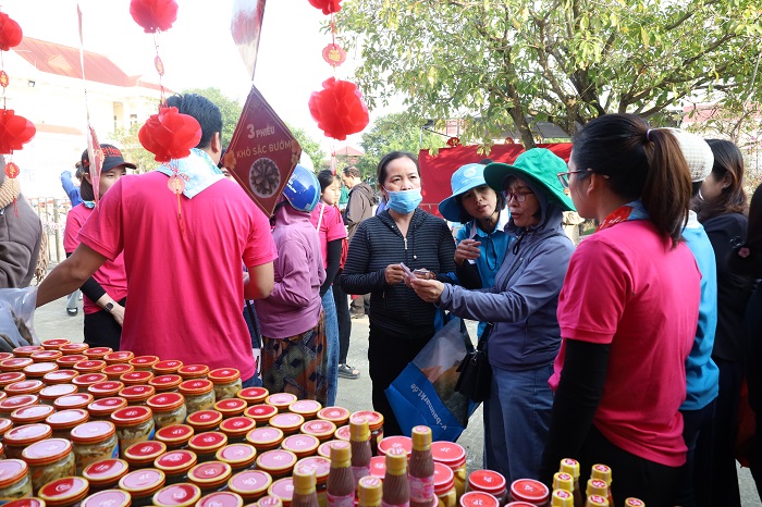 Phiên chợ được tổ chức với các hoạt động gồm: gian hàng phở, gian hàng hoá mỹ phẩm, gian hàng nông cụ, dụng cụ, gian hàng cá khô và gia vị, gian hàng rau củ và trái cây miền nam, gian hàng vải, chăn ga, gối nệm, gian hàng quần áo, gian hàng trẻ em: gồm các loại đồ chơi, gấu bông…, gian hàng thức ăn nhanh, gian hàng con giống. Cùng với đó, 5.000 hộ nghèo, cận nghèo, hộ đặc biệt khó khăn trên địa bàn 6 xã: Tây Hoà, Phú Hoà 1, Đông Hoà, Hoà Mỹ, Hoà Thịnh, Sơn Thành) được nhận phiếu, số lượng phiếu để nhận quà do các nhà tài trợ trao tặng.