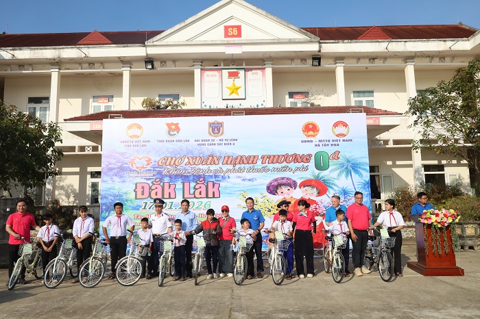 Tại Phiên chợ, Ban Tổ chức cũng trao tặng 30 xe đạp cho học sinh nghèo vượt khó học tốt.