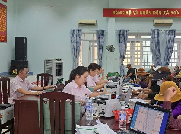 Nhằm tạo điều kiện cho người dân được vay vốn để chăn nuôi, sản suất kinh doanh, chi phí học tập cho học sinh viên viên, xây mới, nâng cấp, cải tạo công trình nước sạch và nhà vệ sinh kịp thời. Ngày 07/02, tại điểm giao dịch xã Sơn Thành Đông đã giải ngân 2.000 triệu đồng/48 hộ vay vốn, trong đó: