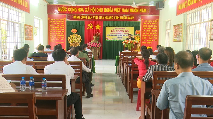 Phát biểu tại buổi lễ, Phó Chủ tịch Thường trực UBND huyện Mai Ne ghi nhận và biểu dương những thành tích mà thôn Phước Nông đã nỗ lực, phấn đấu đạt được trong phong trào xây dựng NTM. Để giữ vững danh hiệu và không ngừng nâng cao chất lượng khu dân cư NTM kiểu mẫu, đồng chí đề nghị, địa phương cần tiếp tục đầu tư, cải tạo, nâng cấp các công trình thiết yếu để phục vụ nhu cầu sinh hoạt của người dân, đồng thời quan tâm phát triển sản xuất để nâng cao thu nhập cho người dân. Trong đó, cần ứng dụng khoa học công nghệ vào sản xuất, phát triển sản phẩm OCOP chủ lực tại địa phương, xây dựng thôn Phước Nông ngày càng thêm giàu đẹp.