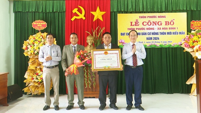 Lãnh đạo huyện Tây Hòa trao bằng công nhận thôn Phước Nông đạt chuẩn khu dân cư NTM kiểu mẫu 2024